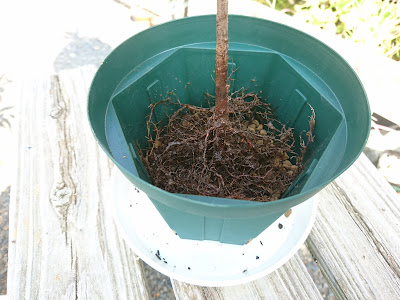 シャリンバイの根元を確認するために、根鉢の表面の土を