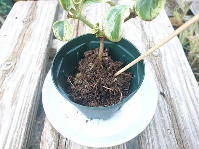9月26日に、コプロスマ「マーブルクイーン」の苗木を鉢に植え付け・植え替えしました。